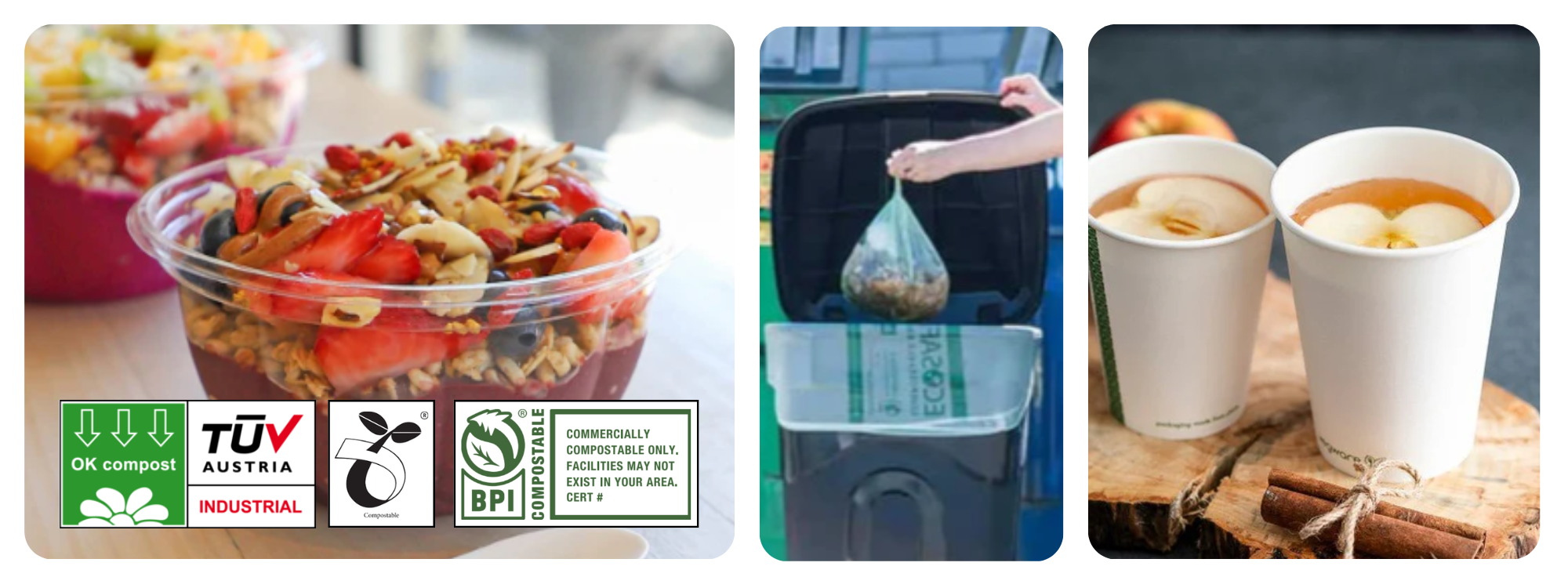 These products require higher heat and specific conditions found in commercial composting facilities. Great examples include liners, cutlery, and clear cups. There are even hot cups lined with PLA, a plant-based plastic lining that keeps your cup waterproof and warm!