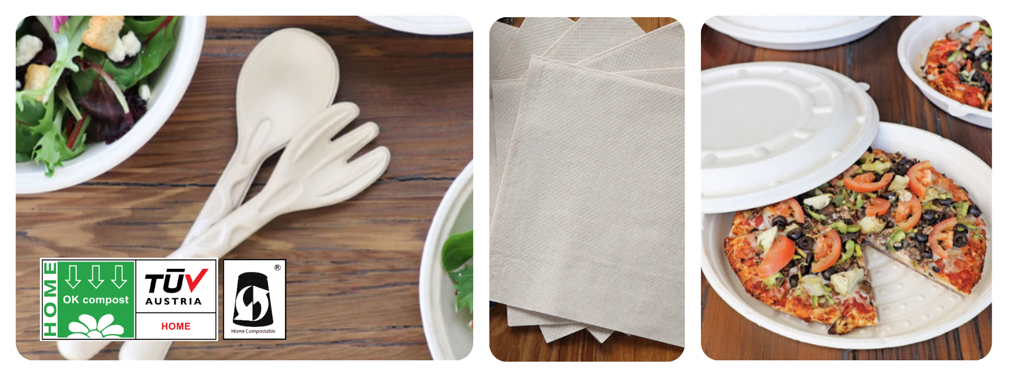 Certified to break down in a backyard compost pile without specialized equipment. Look for items like bamboo cutlery or uncoated plates and bowls.